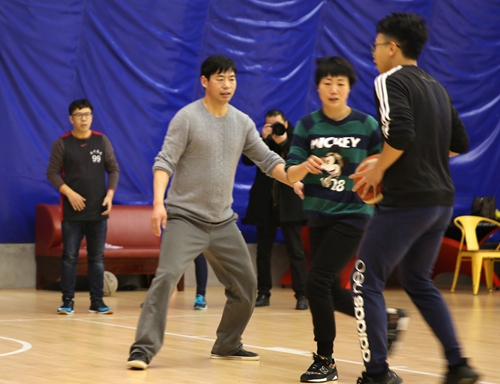 228日,集團工會舉“趣味籃球賽”,集團副總經理陳保衛代表行政分工會參賽,副總經理章海峰、工會主席項義超到現場觀看比賽。