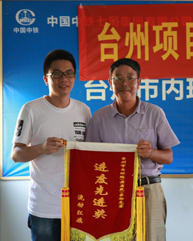圖為為獲獎施工單位頒發(fā)流動紅旗