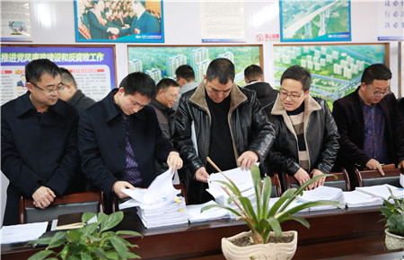圖為集團總工程師江輝在檢查安全臺賬