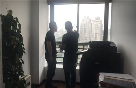 圖為檢查門窗 臺風(fēng)來臨期間,市政公司要求員工手機(jī)保持暢通,盡量在公司或者家里不要外出,確保人身和財產(chǎn)的安全,避免不必要的傷害和損失。 徐夢燁